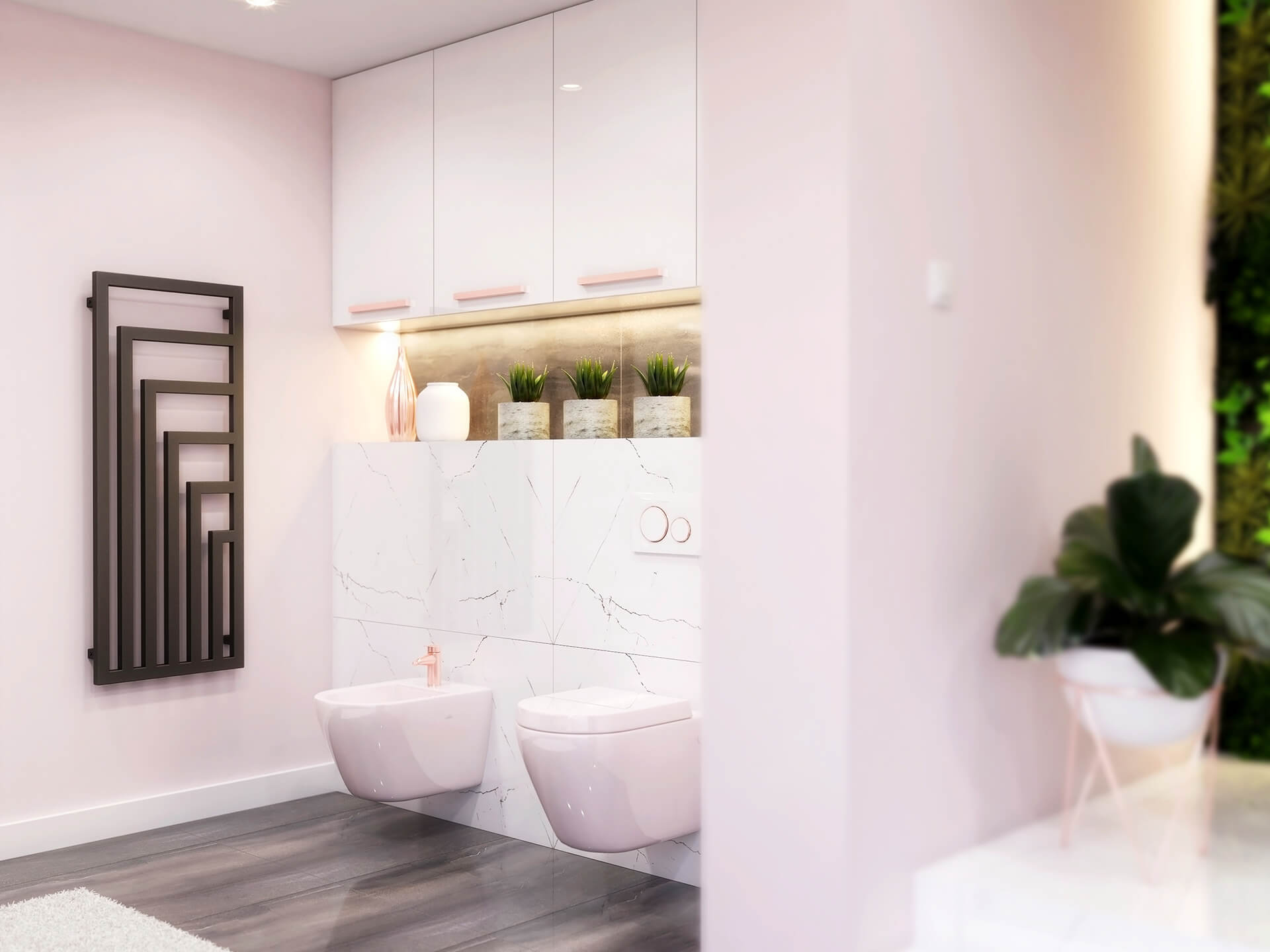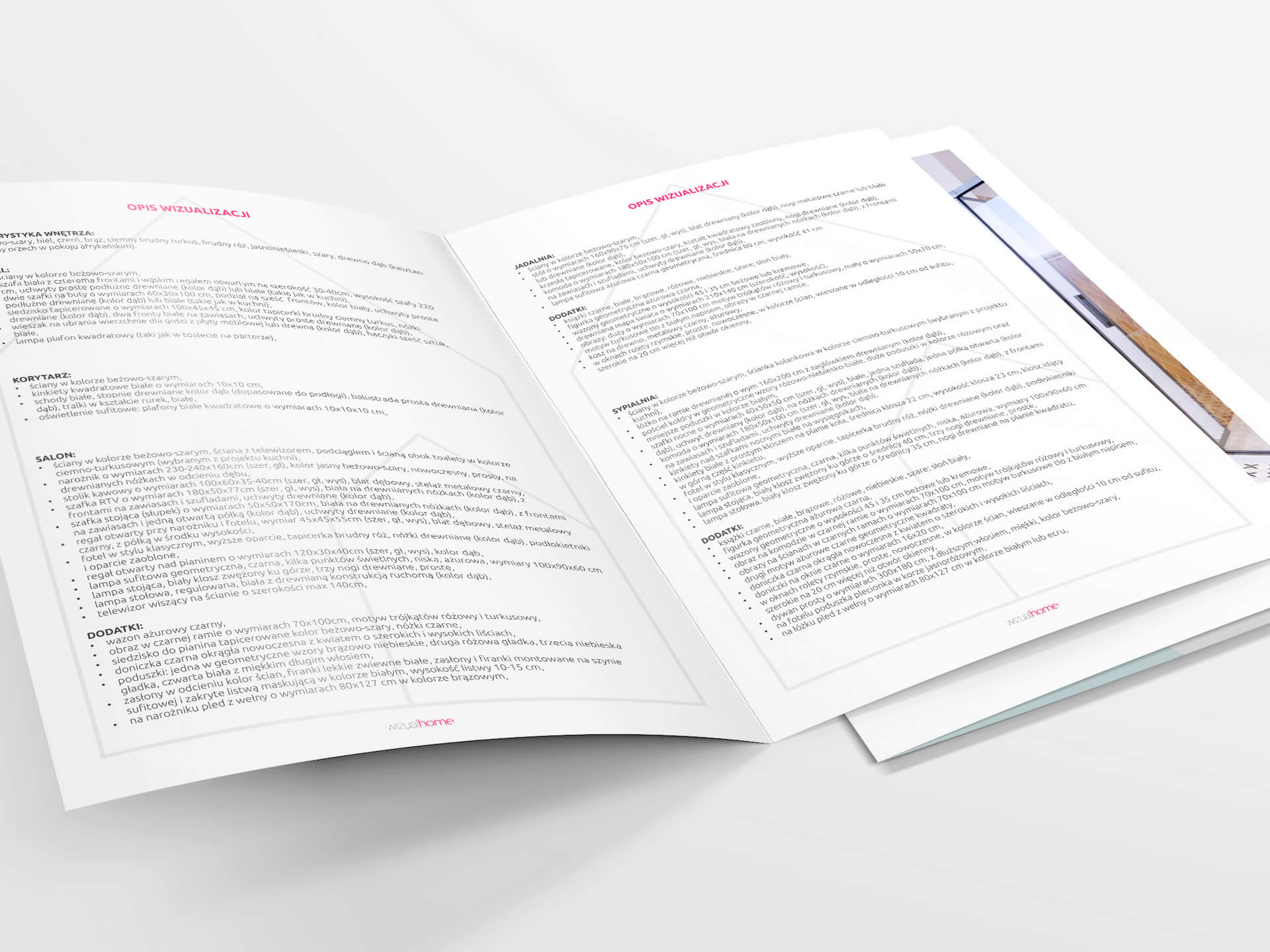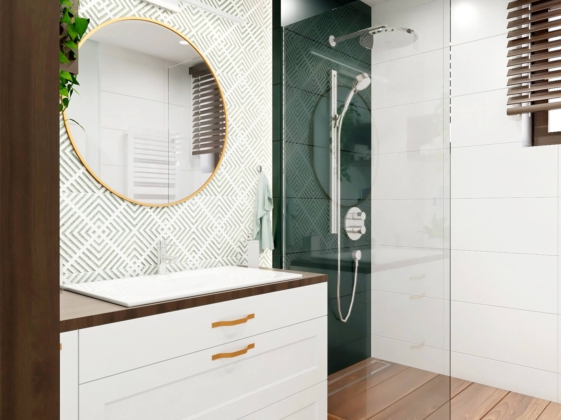 Pakiet wizualizacji składa się z 4-6 kadrów projektowanej łazienki, opisu wizualizacji w formie pdf oraz szablonu listy zakupów do samodzielnego wypełnienia.